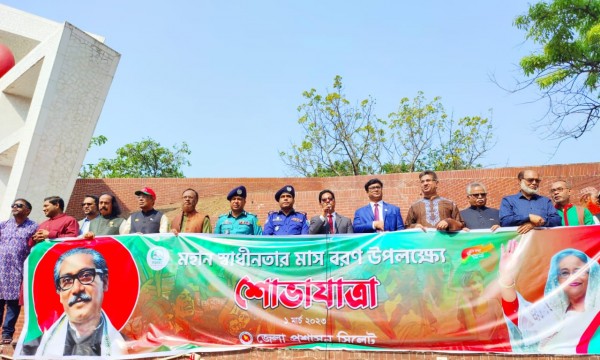 আজ বুধবার সকালে এই শোভাযাত্রা বের করা হয়। জেলা প্রশাসকের কার্যালয়ের সামনে থেকে শোভাযাত্রাটি বের হয়ে কোর্টপয়েন্ট, জিন্দাবাজার হয়ে চৌহাট্টাস্থ কেন্দ্রীয় শহীদ মিনারের সামনে গিয়ে শেষ হয়।