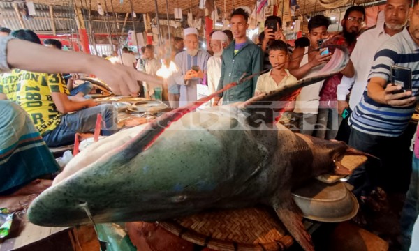 আজ মঙ্গলবার (১৪ মার্চ) ভোরে সিলেটের জকিগঞ্জ উপজেলায় কুশিয়ারা নদীতে জেলেদের জালে মাছটি ধরা পড়ে। পরে সকালে সেটি বিক্রির জন্য লালবাজার মাছবাজারে এটি তোলা হয়।