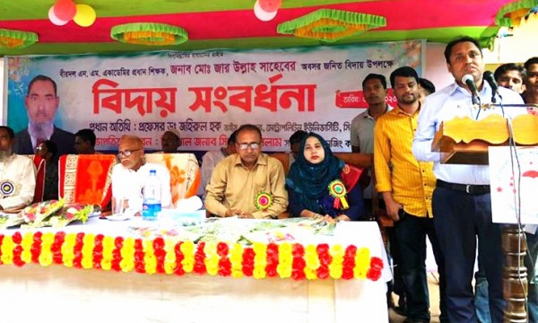 বিদায়ী শিক্ষক জনাব মো. জার উল্লাহকে শুভেচ্ছা ও অভিনন্দন জানিয়ে প্রফেসর ড. মোহাম্মদ জহিরুল হক আরও বলেন, “জীবনে সকল শিক্ষকের মতোই তিনি সামান্য প্রাপ্তির বিপরীতে অসামান্য অবদান রেখে গিয়েছেন। মমতার বাধন ও সোহাগ ভরা স্বপ্নচারী শাসন দিয়ে শিক্ষকতাকে নতুন মানদণ্ডে উন্নীত করেছেন। আমি একজন শিক্ষক হিসেবে বিশ্বাস করি, শিক্ষকতা কোনো পেশা নয়; বরং ব্রত। আর এ ব্রতকে ধারন করে মোঃ জার উল্লাহ একজন সফল মানুষ; কৃর্তিমান ব্যক্তিত্ব।” ধর্মীয় মূল্যবোধের শ্রদ্ধা ও অসাম্প্রদায়িক এলাকা হিসেবে পরিচিত কানাইঘাট তথা এ শিক্ষা প্রতিষ্ঠানের আশে-পাশের এলাকার মুক্তিযোদ্ধা, রাজনৈতিক ব্যক্তিত্ব, আলেম-উলামাসহ এতদঞ্চলের কৃতিসন্তানদের শ্রদ্ধা ভরে স্মরণ করেন এই বরণ্য শিক্ষাবিদ।