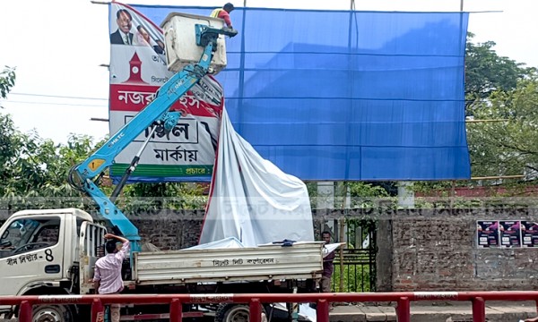 সিলেট সিটি করপোরেশন নির্বাচনকে কেন্দ্র করে মেয়র ও কাউন্সিলর প্রার্থীদের পক্ষে লাগানো তোরণ, বিলবোর্ড, ব্যানার, ফেস্টুন ও পোস্টার অপসারনে অভিযান শুরু করেছে সিলেটের আঞ্চলিক নির্বাচন কার্যালয়।