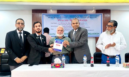 বাংলাদেশ বার কাউন্সিলের ২০২২-২৩ সনের এনরোলমেন্ট পরীক্ষায় উত্তীর্ণ হয়ে অ্যাড্ভোকেটশীপ অর্জনকারী নর্থ ইস্ট ইউনিভার্সিটি বাংলাদেশের শিক্ষার্থীদের আনুষ্ঠানিকভাবে সংবর্ধনা দেওয়া হয়েছে। সোমবার (২২ মে) বিকেল ৩টায় বিশ্ববিদ্যালয় অডিটোরিয়ামে এই সংবর্ধনা দেওয়া হয়।