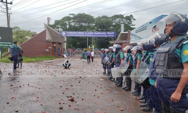 সিলেটের মেট্রোপলিটন পুলিশের উপ কমিশনার আজবাহার আলী শেখ বলেন, ক্যাম্পাসের ভেতরে প্রবেশ করা নিয়ে বহিরাগত ও গার্ডের সাথে হট্টগোল লাগে। এক পর্যায়ে সংঘর্ষ শুরু হয়, এখন পরিস্থিতি নিয়ন্ত্রণে আছে। আমরা আগে ঘটনা পর্যবেক্ষণ করি, তার পর একটা ব্যবস্থা নেওয়া হবে।