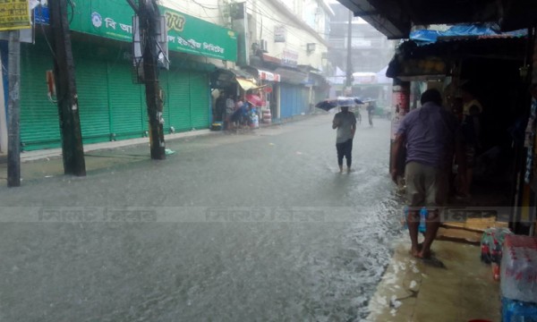 টানা বৃষ্টিতে ডুবে গেছে নগরের জল্লারপার-দাড়িয়াপাড়া সড়ক। ছবি- মামুন পারভেজ