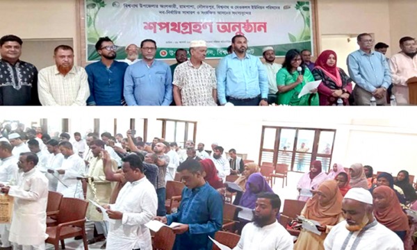 আজ সোমবার (২৮ আগস্ট) দুপুরে নবনির্বাচিতদের শপথবাক্য পাঠ করান উপজেলা নির্বাহী কর্মকর্তা (ইউএনও) নুসরাত জাহান।