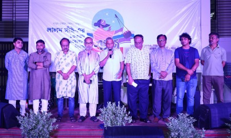‘সহজ মানুষ’ কিংবা ‘এমন মানবজনম আর কি হবে’। মঞ্চে লালন সাঁইয়ের গান একের পর এক পরিবেশন করছিলেন শিল্পীরা। আর অনুষ্ঠানস্থলের মৃদু আলো-আঁধারি পেরিয়ে সে গানের মুর্ছনা যেন ছড়িয়ে পড়ছিল চারদিকে। দর্শক সারিতে থাকা শ্রোতারা মন্ত্রমুগ্ধের মতো শোনছিলেন সে গান।