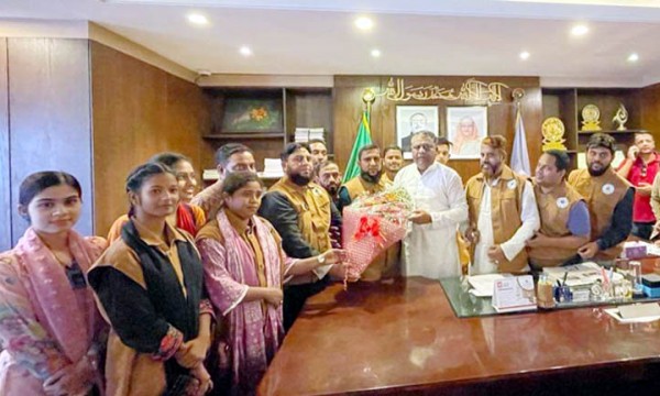 সিলেট সিটি করপোশনের নবনির্বাচিত মেয়র আনোয়ারুজ্জামান চৌধুরীকে ফুলেল শুভেচ্ছা জানিয়েছে বাংলাদেশ ইয়ূথ ক্যাডেট ফোরাম বিওয়াইসিএফ সিলেট জেলার নেতৃবৃন্দ।