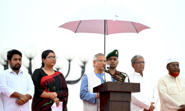আজ মঙ্গলবার (৬ আগস্ট) জাতীয় সংসদ ভবনের সামনে জুলাই গণঅভ্যুত্থান দিবসের অনুষ্ঠানে মুহাম্মদ ইউনূস বলেন, “৫ অগাস্ট ২০২৪ সালে গণঅভ্যুত্থানে বিজয়ী বাংলাদেশের জনগণের আকাঙ্ক্ষার প্রতিফলন হিসেবে এই ঘোষণাপত্র প্রনয়ণ করা হল।”