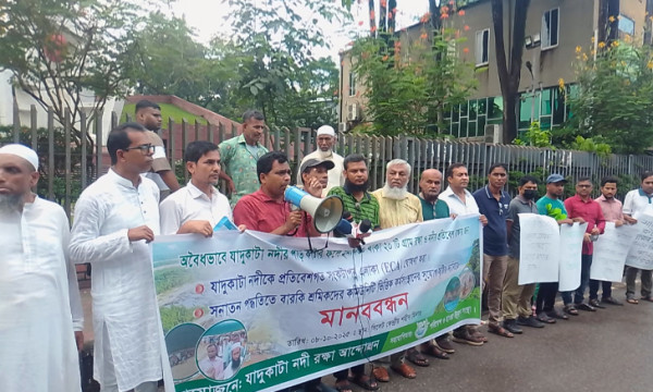 সুনামগঞ্জের বালুমহাল যাদুকাটা-১ ও যাদুকাটা-২ বিলুপ্ত ঘোষণা করে যাদুকাটা নদীকে প্রতিবেশ সংকটাপন্ন এলাকা ঘোষণা করার দাবিতে মানববন্ধন কর্মসূচি পালন করেছে যাদুকাটা নদী রক্ষা আন্দোলন।