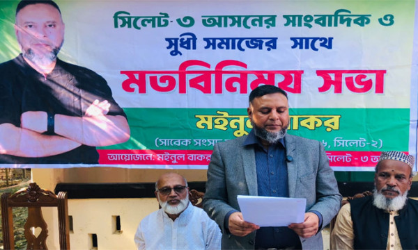 সাংবাদিকদের বিভিন্ন প্রশ্নের জবাবে তিনি বলেন, নির্বাচিত হোন বা না হোন আজীবন এলাকার সাধারণ, গরিব ও অসহায় মানুষের পাশে থাকবেন। স্বচ্ছতা, সততা ও জবাবদিহিতার ভিত্তিতে একটি মানবিক, ন্যায়ভিত্তিক ও কর্মমুখী সমাজ গঠনের অঙ্গীকার পুনর্ব্যক্ত করেন। এর আগে সম্ভাব্য স্বতন্ত্র প্রার্থী মইনুল বাকর ফেঞ্চুগঞ্জ ও দক্ষিণ সুরমায় সাংবাদিকদের সঙ্গে পৃথক মতবিনিময় সভায় অংশগ্রহণ করেছেন। মতবিনিময় সভায় বালাগঞ্জ উপজেলা প্রেসক্লাবের সাংবাদিকবৃন্দসহ স্থানীয় গণ্যমান্য ব্যক্তিবর্গ উপস্থিত ছিলেন।