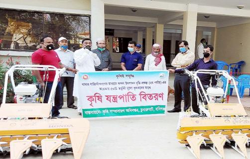 চুনারুঘাটে কৃষকদের মাঝে ধান কাটার যন্ত্র বিতরণ