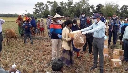হাওরপাড়ে শ্রমিকদের খাবার দিলেন হবিগঞ্জের ডিসি