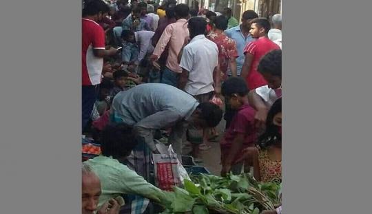 মাধবপুরে সামাজিক দূরত্ব রাখছেন না ক্রেতা-বিক্রেতারা