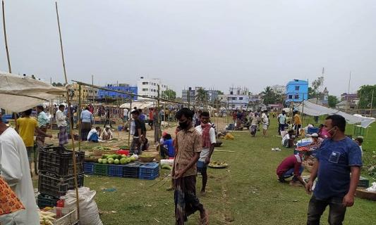 মাধবপুরে সামাজিক দূরত্ব নিশ্চিত করতে সরানো হলো বাজার
