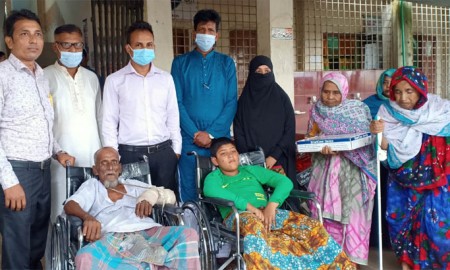মাধবপুরে হুইল চেয়ার ও সাদাছড়ি বিতরণ