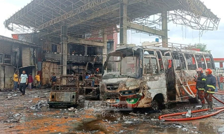 নবীগঞ্জে সিএনজি স্টেশনে বিস্ফোরণ, পুড়ল বাসসহ ১১ যান