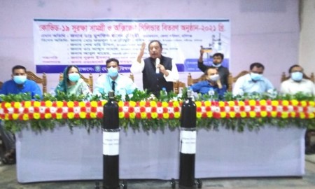 নবীগঞ্জে সুরক্ষাসামগ্রী ও অক্সিজেন সিলিন্ডার বিতরণ
