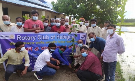 আশ্রয়ণ প্রকল্পে রোটারি ক্লাব অব হবিগঞ্জের বৃক্ষরোপণ, মাস্ক বিতরণ