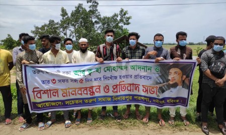 আদনানসহ নিখোঁজদের সন্ধানের দাবিতে নবীগঞ্জে মানববন্ধন