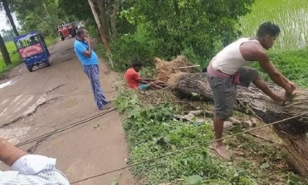 মাধবপুরে সড়কের গাছ কেটে নিলেন তহসিলদার