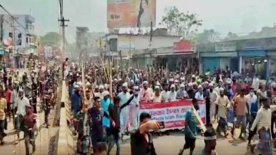 বাহুবলে কাপনের কাপড় পড়ে মাঠে হেফাজতের কর্মীরা