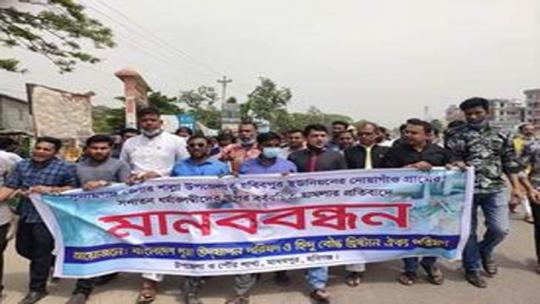সুনামগঞ্জে হামলার প্রতিবাদে মাধবপুরে মানববন্ধন