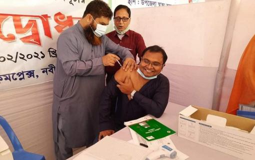 নবীগঞ্জে প্রথম টিকা নিলেন ইউএনও মহিউদ্দিন