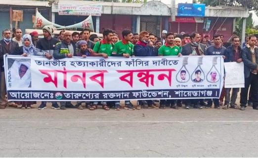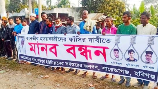 শায়েস্তাগঞ্জে তানভীর হত্যাকারীদের ফাঁসির দাবি গ্রামবাসীর