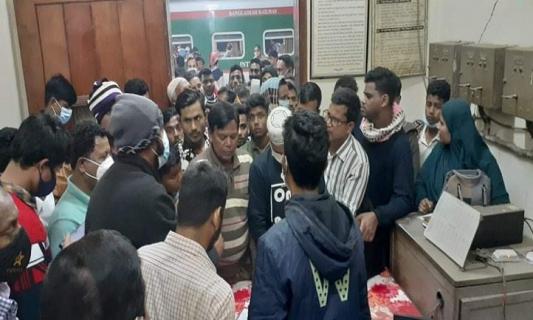 শায়েস্তাগঞ্জে টিকেটের টাকা ফেরত পেতে ট্রেন যাত্রীদের বিক্ষোভ