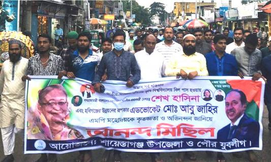 শায়েস্তাগঞ্জে যুবলীগের আনন্দ মিছিল অনুষ্ঠিত