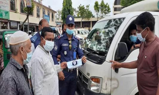 শায়েস্তাগঞ্জে শতাধিক গাড়িতে সচেতনতামূলক স্টিকার ও মাস্ক বিতরণ