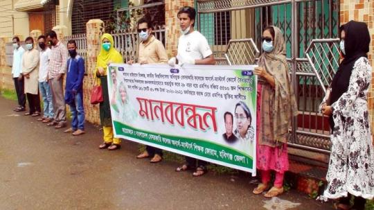 এমপিওভুক্তির দাবিতে হবিগঞ্জে শিক্ষকদের মানববন্ধন