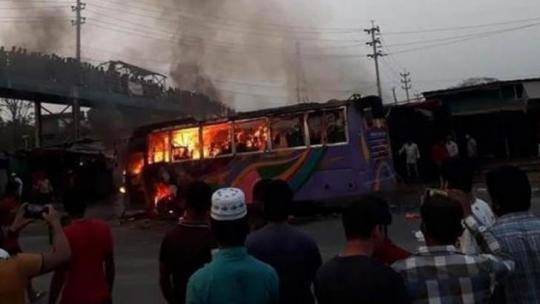 চলন্ত বাসে আগুন : নিহত ২, আহত ২২