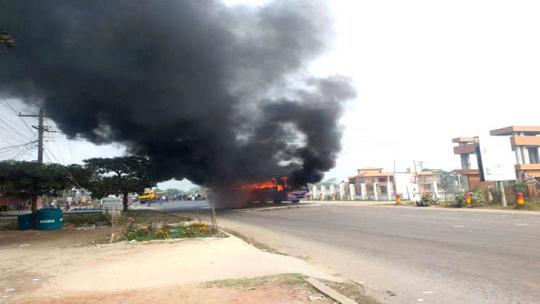 বরিশাল বিশ্ববিদ্যালয় শিক্ষার্থীদের সড়ক অবরোধ, বাসে অগ্নিসংযোগ