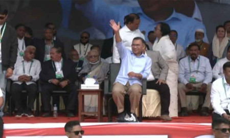 মঞ্চে তারেক রহমান, নগরজুড়ে মানুষের ঢল