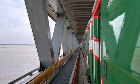 আট মিনিটে পদ্মা পাড়ি দিয়ে ভাঙ্গায় ট্রেন