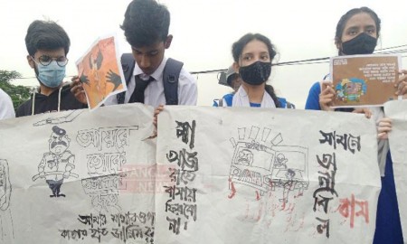 ব্যঙ্গচিত্র নিয়ে শিক্ষার্থীদের মানববন্ধন