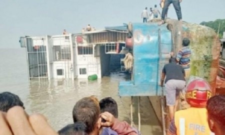 পদ্মায় ১৯টি যানবাহনসহ উল্টে গেছে ফেরি
