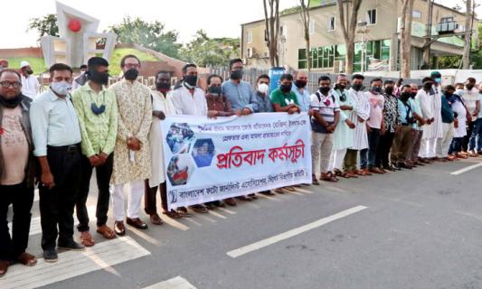 মুখে কাপড় বেঁধে ফটো জার্নালিস্ট অ্যাসোসিয়েশনের প্রতিবাদ