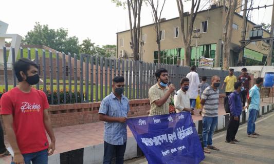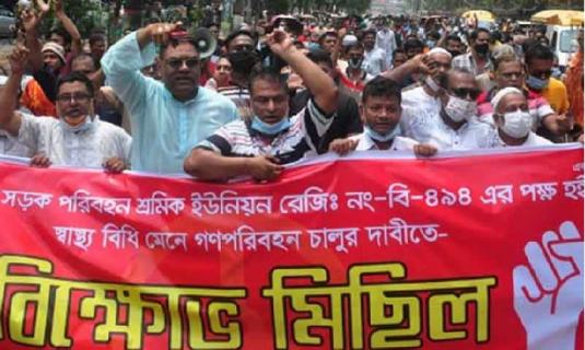 পরিবহন শ্রমিকদের বিক্ষোভ, গণপরিবহন চালুর দাবি