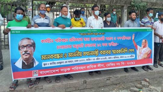 গণপরিবহন চালুর দাবিতে মানববন্ধন