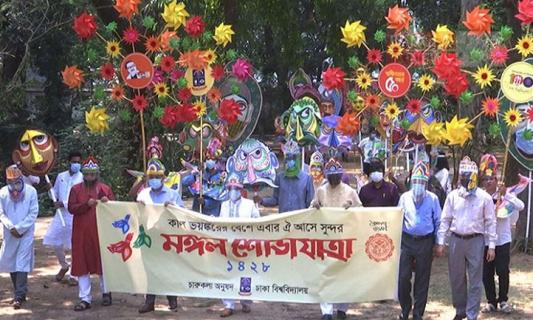 করোনাকালে প্রতীকী মঙ্গল শোভাযাত্রা