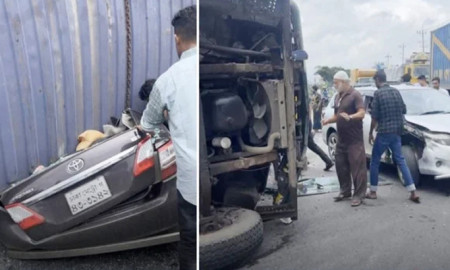 কুমিল্লায় কাভার্ডভ্যান উল্টে প্রাইভেটকার চাপা, প্রাণ গেলো একই পরিবারের চারজনের