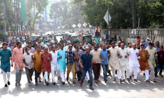 শাল্লায় হামলায় জেলা যুবলীগের বিক্ষোভ মিছিল