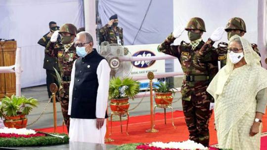 বঙ্গবন্ধুর প্রতিকৃতিতে রাষ্ট্রপতি ও প্রধানমন্ত্রীর শ্রদ্ধা