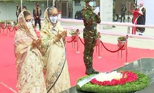 বঙ্গবন্ধুর প্রতিকৃতিতে প্রধানমন্ত্রীর শ্রদ্ধা