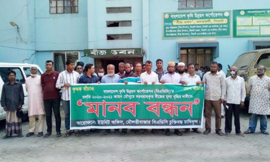 বীজ ধানের ন্যায্যমূল্যের দাবিতে চাষিদের মানববন্ধন ও বিক্ষোভ