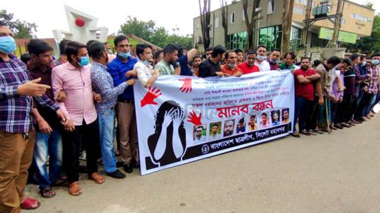 ধর্ষকদের বিচারের দাবিতে মহানগর ছাত্রলীগের মানববন্ধন