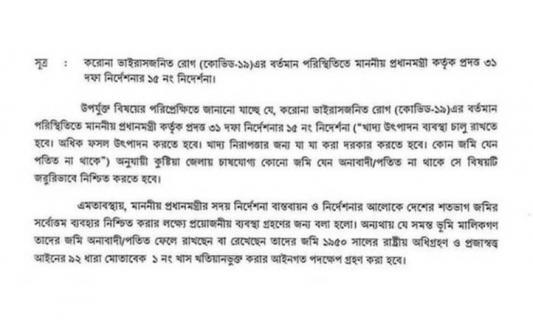 কৃষি জমি ফেলে রাখলে নিয়ে নেবে সরকার