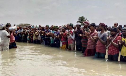হাঁটু পানিতে ঈদের নামাজ আদায়