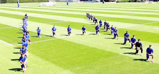জর্জ হত্যায় লিভারপুলের হাঁটু গেড়ে প্রতিবাদ